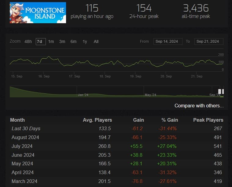 さすがに同時接続数はいまではかなり減りましたが、通常時のアクティブユーザーがいまだに100人以上います