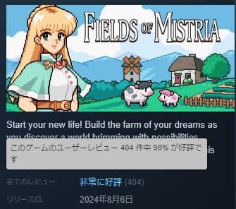 90年代セーラームーンライクのピクセルアート牧場物語系ゲーム、Fields of Mistriaが発売されて98%好評の大入りとなっています!