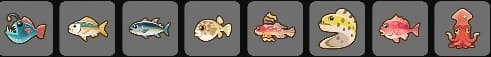 レアリティはアンコモン。春夏秋の夕方か夜に、船着き場かビーチの海で釣れる。かなり引きが強い。テオの大好きなもの