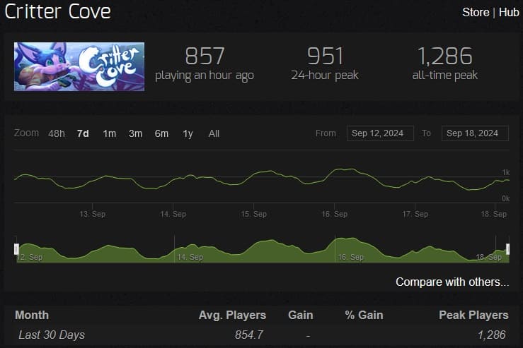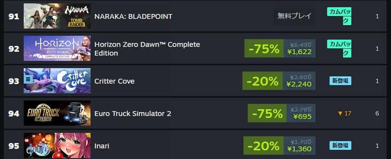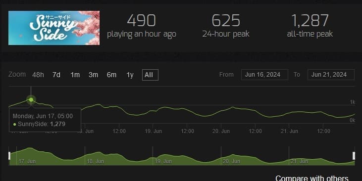 なぜかレビュー数もSunnySideのリリース1週間に似ています。全体的な売り上げが同程度である可能性が非常に高いです。評価はこちらの方がかなり高いです。