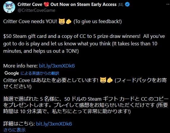 最終テストの際、フィードバックの賞金つきコンテストが行われ、100人以上が長文でレビューを行い大成功となった