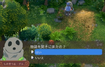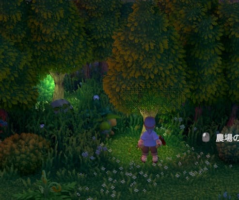 夜に不思議に光っている数本の木がある。光っている木をすべて切り倒してすべてのスイッチにすばやく乗れば宝箱が出現する。