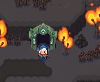 雑魚を倒さないと進めないが強くて数が多い上にダメージの大きい炎である。 回復アイテム、回復役の水の精霊、経験値アイテム(メダルの中でレベルアップするとHPが全快する)のいずれかの戦略が求められる。 ボスはレベル51