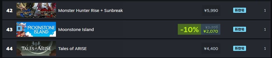 日本の週間売上ランキング、初登場43位。無名のゲームとしてはかなり高い位置。おめでとうございます! グローバルランキングは99位。