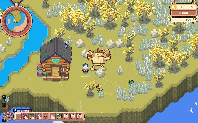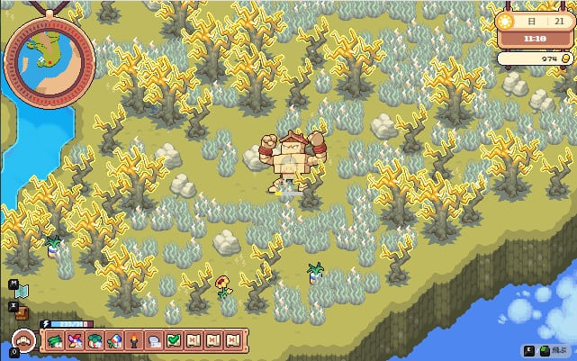 とても人が住めるようには思えないがここを開拓する ここを選んだ理由は雷の島がよかったのと強めの精霊がいてレベル上げがしやすいこと 最初の大陸から離れていて、広い畑を確保できそうな土地、水が近くにあり水生植物や釣りにアクセスできるなどから
